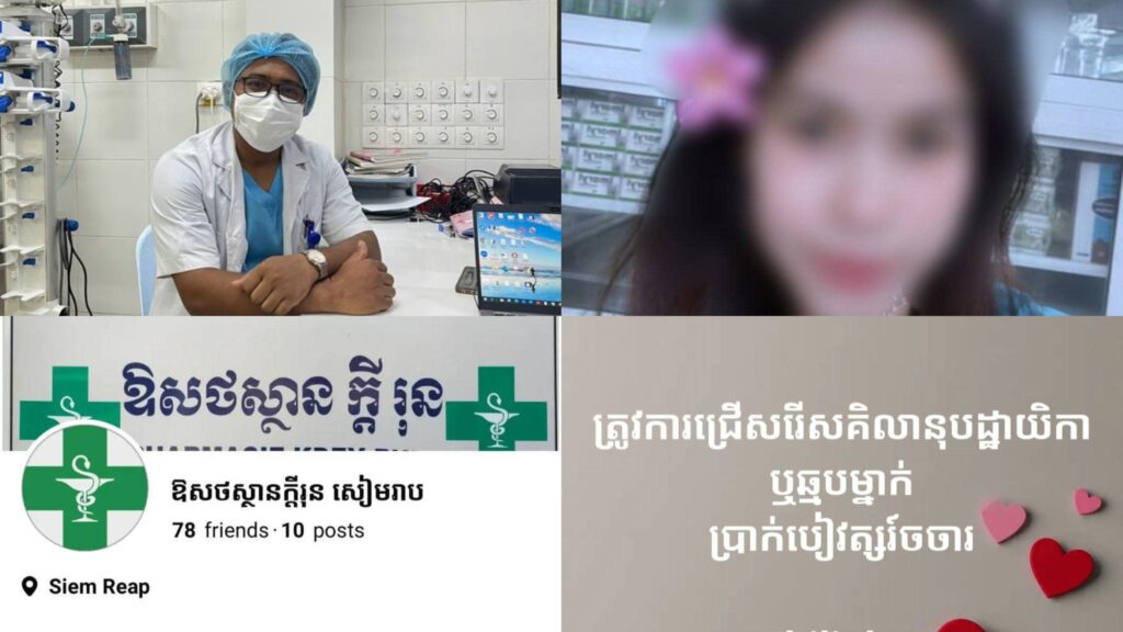 ខេត្តសៀមរាប៖ឱសថស្ថាន ក្ដីរុន ប្រើមនុស្សមិនដែលបានរៀនពេទ្យឲ្យជួយលក់ថ្នាំពេទ្យ ខណៈម្ចាស់អាជីវកម្មជា គិលានុបដ្ឋាក នៅមន្ទីរពេទ្យគន្ធបុប្ផាសៀមរាប ចំណែកប្រពន្ធជាឆ្មប។