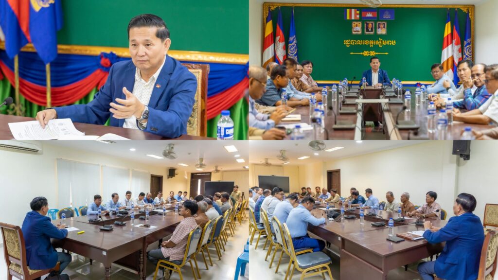 ខេត្តសៀមរាប៖លោក លី សារី អភិបាលរងខេត្តសៀមរាប នៅថ្ងៃទី១០ ខែមីនា ឆ្នាំ២០២៦ បានដឹកនាំបើកកិច្ចប្រជុំ ពិភាក្សា និងដោះស្រាយបញ្ហាពាក់ព័ន្ធនឹងការណូតដឹកអ្នកដំណើររបស់ក្រុមហ៊ុន រ៉ូយ៉ាល់ ដែលបានចេញការណូតដោយមិនគោរពតាមកិច្ចសន្យា និងវេនការណូតដឹកជញ្ជូនអ្នកដំណើរ បង្កឱ្យមានផលប៉ះពាល់ដល់សណ្ដាប់ធ្នាប់ និងសេវាកម្មដឹកជញ្ជូនក្នុងខេត្ត ជាពិសេសប៉ះពាល់ដល់ការធានាឱ្យបាននូវការអនុវត្តតាមកិច្ចសន្យា និងការពារប្រយោជន៍សាធារណៈ ក៏ដូចជាសេវាកម្មទេសចរណ៍ក្នុងតំបន់។